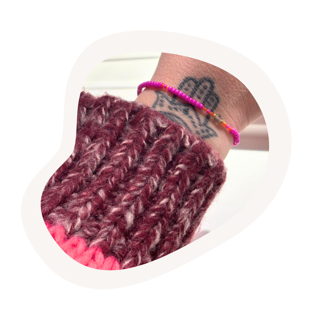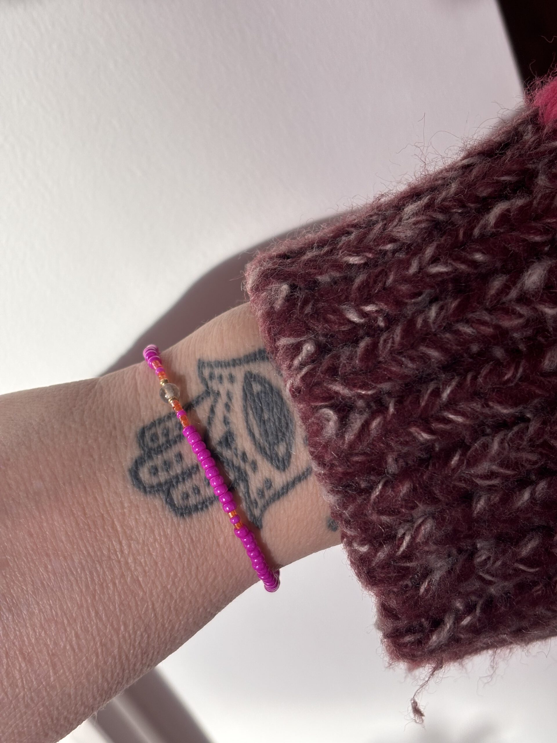 Oftewel: balans, bescherming en een reminder aan je eigen innerlijke kracht. Een prachtige reminder om dicht bij jezelf te blijven, ook wanneer het leven in beweging is. Liefdevol geregen door mij, in fuchsia met een vleugje oranje. Een knipoog naar energie & creativiteit.
